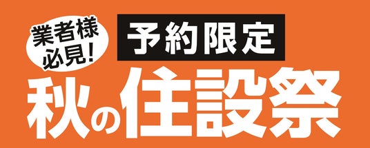 今年の夏に初開催し、大変ご好評いただいておりました予約限定の住設祭をこの秋にも開催いたします。プロの職人様や、業者様向けに、住宅設備機器や建築資材などを期間限定の超特別価格でご用意いたしました。