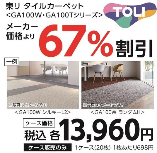 東リ タイルカーペット<GA100W・GA100Tシリーズ>・実施店舗合計先着100ケース