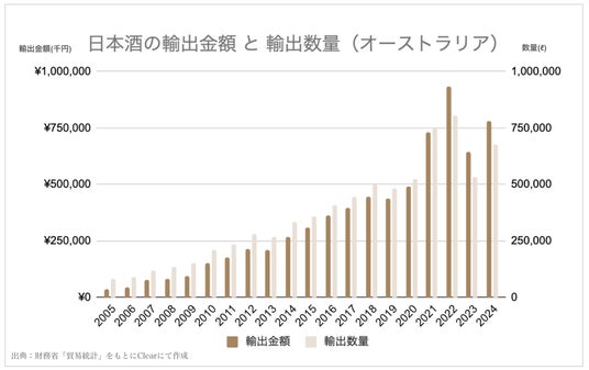 オーストラリアは2024年の日本酒輸出金額第8位の国で、ここ15年で輸出金額が4.4倍に伸長しています(*1)。また、ワインの消費国としても知られており、1人あたりのワイン消費量は世界第7位で、日本人の8倍以上を消費(*2)しており、日本酒と同じ醸造酒を楽しむ文化が日本以上に根付いています。