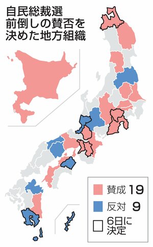 政治・行政 国政 自民党総裁選前倒し賛成、19都道府県に拡大 新潟県連は9月8日に決定見通し 2025/9/6 20:50 (最終更新: 2025/9/6 23:38) 自民党の総裁選前倒しの是非を巡り、新たに青森、山梨、静岡、滋賀、大阪、奈良の6府県連が6日、前倒しを要求する方針を決定し、これまでに賛成は19都道府県連に拡大した。一方、福井、徳島、鹿児島、沖縄各県... 残り864文字(全文:964文字) ここから先を読むには 続きを読む(会員登録する) 続きを読む(ログイン) 新潟日報朝刊を購読していますか? はい いいえ トップページで最新情報を見る 関連ニュース 高市内閣が資産公開、閣僚資産平均6641万円 小泉氏が最多2... 12/8 来年1月解散の可能性も…立憲民主・安住幹事長が燕市で語る 柏... 12/6 与党の衆院議員定数削減法案、小選挙区は20都道府県が対象に ... 12/4 自民党の麻生太郎氏、台湾巡る首相答弁に問題なし 斎藤洋明衆院... 12/3 [2024年分 政治資金収支報告書]新潟県内で活動する政党、... 11/28 高市政権「順調なスタート」と鈴木自民党幹事長、新潟市の党会合... 11/25 立憲民主の国会活動、SNSで非難浴びる 「姿勢変えない」一方... 11/24 国民民主・榛葉幹事長が来県 「新潟でも候補擁立」衆院選へ意欲示す 11/22 経済財政諮問会議にDeNA南場智子会長(新潟市出身)ら、民間... 11/10 【政治コラム・永田町天地人】高市政権の行方 鍵握る遠藤首相補... 10/27 高市早苗首相の所信表明、新潟県関係国会議員の評価は…自民党「... 10/24 初の女性首相誕生の意義、影響は?新潟国際情報大・越智敏夫学長... 10/23
