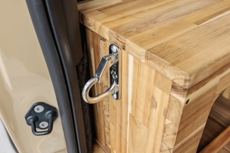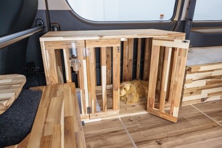 ペットの健康に配慮したフローリング(関節炎予防のため滑りにくい床材)の採用や、ペットが生理的に好む狭くて暗い空間づくり、簡易シャワーやリードフックの設置、限られた車内空間を有効利用する収納スペースの設置など細部にまでこだわり抜いた仕様を提案いたします。