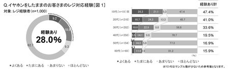 1. 若い世代ほど「あるある」―約4人に1人が「イヤホンをしたままのお客さま」を経験―