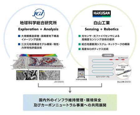 本提携では、白山工業のセンシング技術・ロボティクス技術と、地球科学総合研究所の地質・物理探査及び貯留層解析に関する研究知見を融合し、次世代の観測・解析ソリューションの共同開発と新市場の創出を推進します。これにより、インフラモニタリングやカーボンニュートラルの実現など、社会的ニーズの高い分野への貢献を目指します。