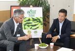 東京農業大の全学応援団リーダー部が8日、新潟県庁の正面玄関で伝統の応援「大根踊り」を披露した。部員は両手に持った大根を突き上げ、息の合った迫力ある動きで、見守る来庁者らを圧倒した。