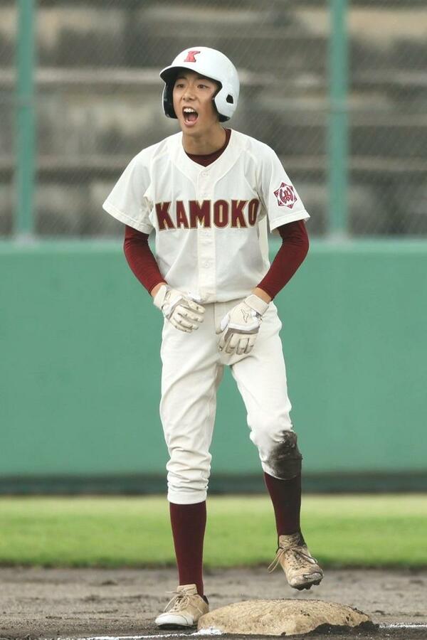加茂-敬和学園 4回無死三塁、加茂の志田京介が適時打を放ち、8-4=新発田市五十公野