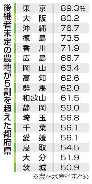 経済 米・農業 後継者決まらぬ農地17都府県で5割超、新潟県は18・4% 農林水産省調査、小泉進次郎農相「危機感伝えたい」 2025/9/15 12:00 農林水産省は9日、10年後の後継者が決まっていない農地が17都府県で5割を超えたとの調査結果を公表した。西日本に多く、徳島と香川、沖縄は7割に達した。全国平均は31・7%。このままでは耕作放棄地が... 残り684文字(全文:783文字) ここから先を読むには 続きを読む(会員登録する) 続きを読む(ログイン) 新潟日報朝刊を購読していますか? はい いいえ トップページで最新情報を見る 関連ニュース 農業振興実現へ 刈羽村・新潟大・未来農村かりわ総合研究所が基... 11/1 コメ「増産」方針一転減産へ…新米の価格、需要量はどうなる?揺... 10/30 段ボールと堆肥で耕す手間いらず!?雑草も生えにくい不耕起栽培... 10/28 魚沼産コシヒカリ×モツ焼き、天ぷら…新米と山のごっつぉ楽しん... 10/27 政府のコメ減産検討、価格下落防止へ新潟県内生産者から評価の声... 10/27 新潟県内でコメ盗難被害急増…「農繁期が終わったこれからこそ注... 10/24 花角英世知事が会見、政府のコメ減産検討に米価暴落回避へ一定理... 10/24 コメ増産方針一転減産へ 鈴木憲和新農相「需要に応じた生産」強... 10/23 色づきよく品質良好!新潟市南区で秋の味覚「カキノモト」の収穫... 10/22 暑さに強い「新大コシヒカリ」出来上々!実証実験6年目、高温少... 10/22 新米の卸値急騰1・6倍、魚沼産コシヒカリ60キロ4万2257... 10/22 新潟県のスマート農業推進に弾み!アグリサービスカンパニー(長... 10/21