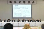 2025年産の佐渡米の初検査=10日、佐渡市宮川