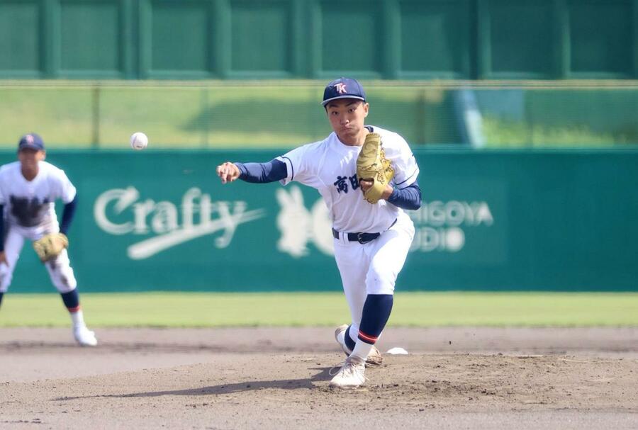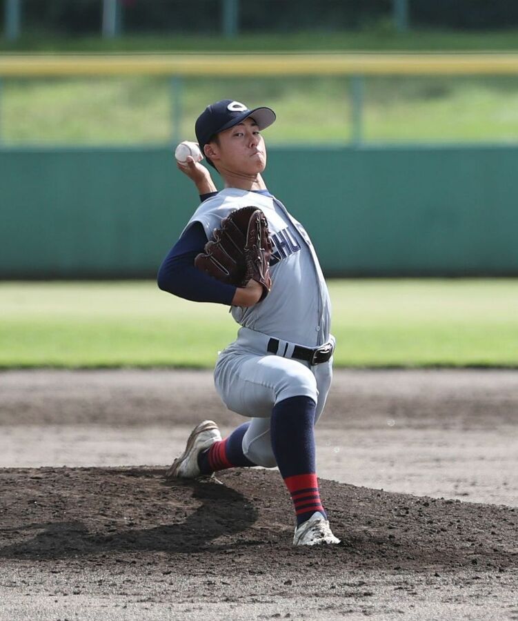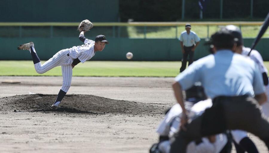 中越-新発田 4回を無安打無失点でまとめた中越の先発、主戦柳涼太郎=9月19日、新発田市五十公野