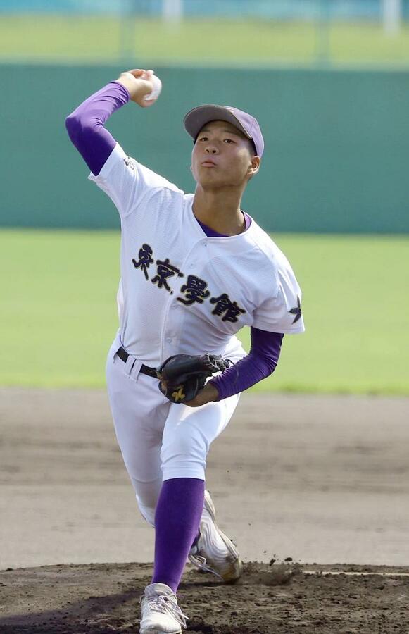 帝京長岡-東京学館 東京学館の先発髙橋遵=19日、柏崎市佐藤池