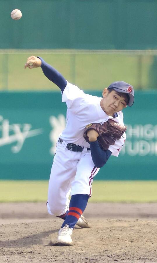 帝京長岡-東京学館 帝京長岡の先発工藤壱朗=19日、柏崎市佐藤池