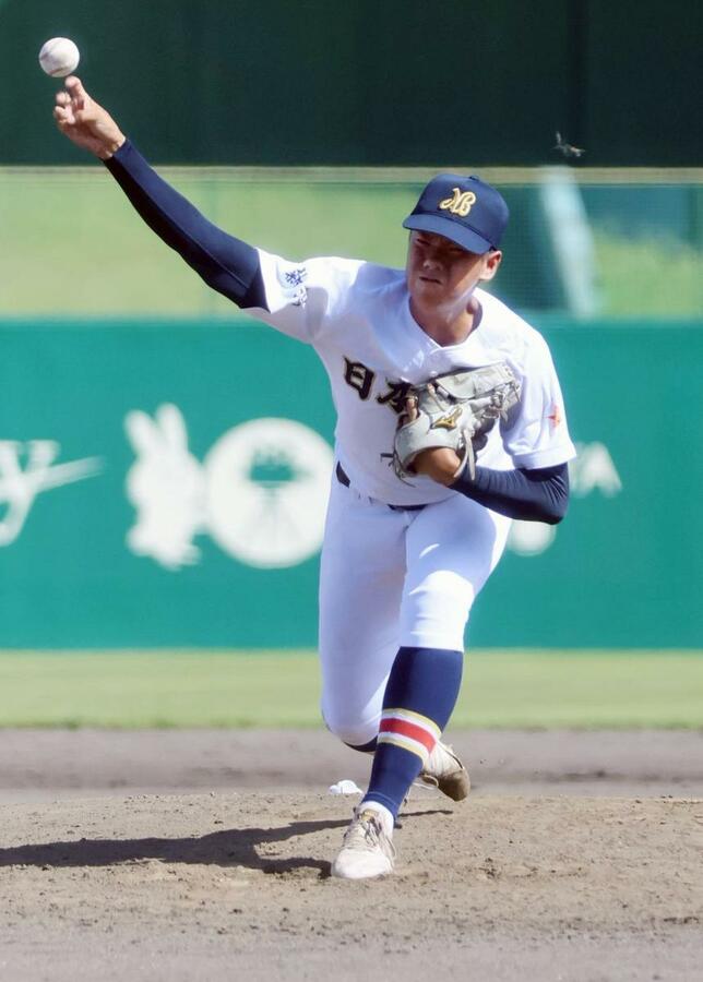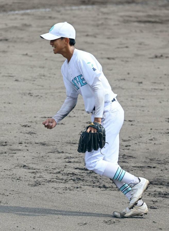 六日町-新潟明訓 継投した新潟明訓の主戦波多野龍冴=9月19日、三条市パールスタ