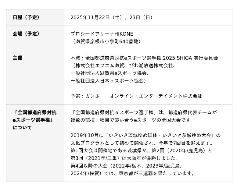 「全国都道府県対抗eスポーツ選手権 2025 SHIGA」概要