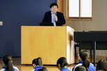 11日は約40人の留学生が小千谷市を訪れ、小千谷市役所で、大家養殖場の片岡太郎さんと市の職員から、錦鯉の生産スケジュールや輸出の伸びなどについて説明を受けた。