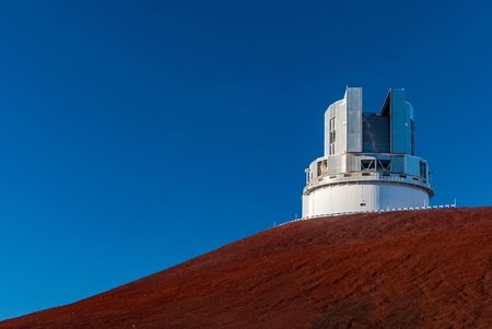 図3. 快晴のマウナケア山頂域にたたずむすばる望遠鏡 (Credit:Sebastian Egner/NAOJ)