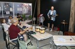 中央商店街で関係者と意見交換をする三条高校の生徒たち=三条市本町2