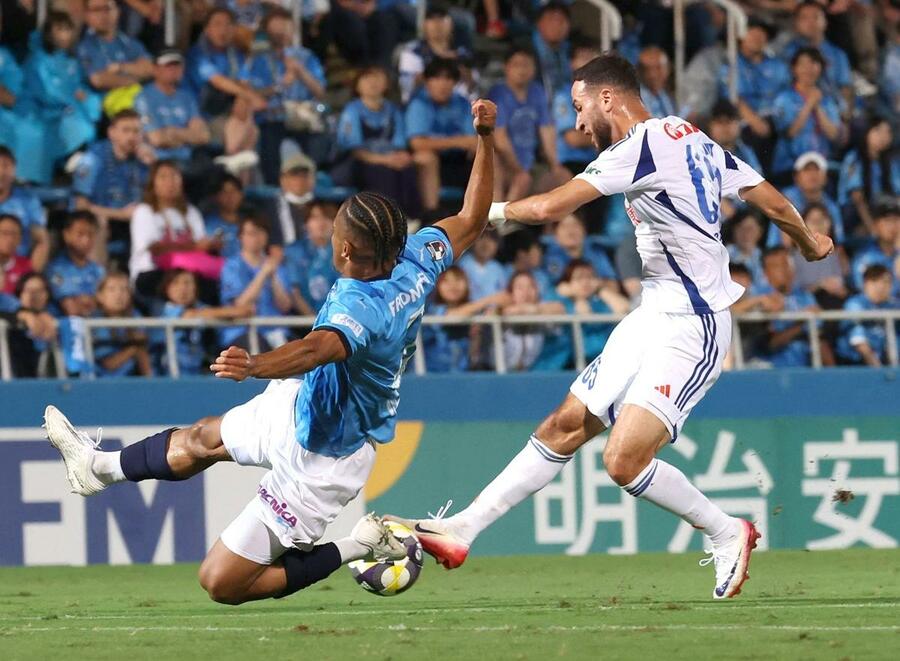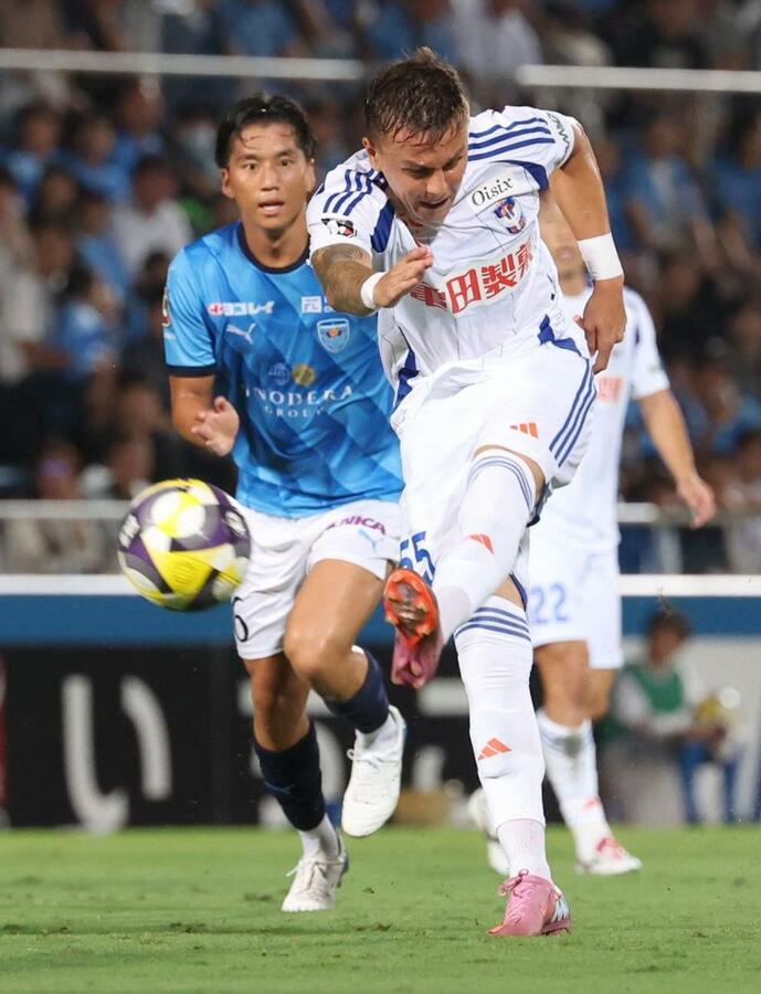 後半、決定機を迎えるもしっかりとミートできず惜しくもゴールを奪えなかったマテウス・モラエス=ニッパツ三ツ沢球技場