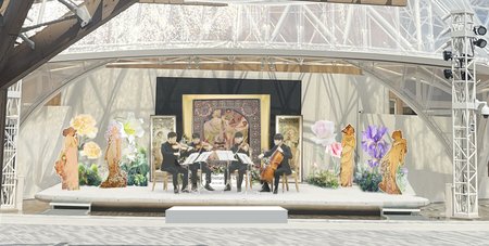 ‣ミュシャ作品の展示や世界観を表現する生演奏、作品をイメージしたお花に包まれるフォトスポット
