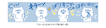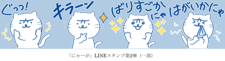 スタンプバージョンの「にゃーが」は通常バージョンと違ったテイストのかわいらしいデザインで、今年2月にリリースした第1弾は4,000ダウンロードを突破するなど大変好評です。