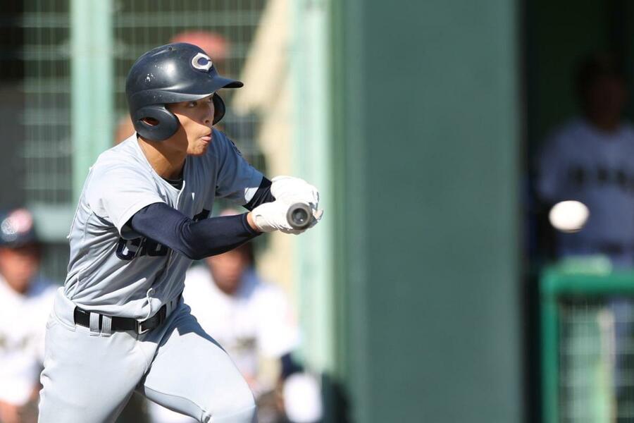 中越-日本文理 6回中越1死三塁、本田寛風のバント安打で4-1=三条パール