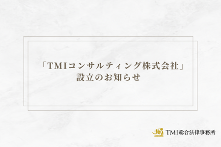 TMI総合法律事務所(所在地:東京都港区、代表:田中克郎)は関連組織として「TMIコンサルティング株式会社(所在地:東京都港区、以下TMIコンサルティング)」及び「TMI Consulting Vietnam Co., Ltd.(所在地:ベトナム社会主義共和国ホーチミン市、以下ベトナム現地法人)」を設立しましたので、お知らせいたします。