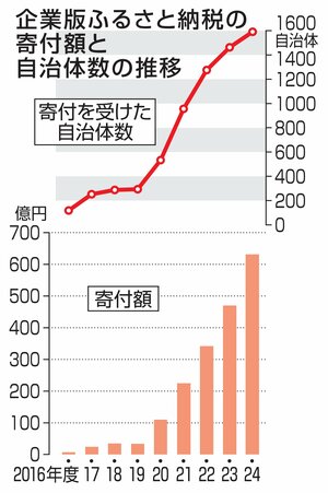 社会 政治・行政 企業版ふるさと納税寄付額が過去最多、2024年度は631億円!自治体別、都道府県別で最多だったのは? 2025/9/27 12:00 企業が2024年度に「企業版ふるさと納税」制度を利用して自治体へ寄付した額は、約631億4千万円だった。前年度比1・3倍。寄付件数は1・3倍の1万8457件で、金額、件数とも制度が始まった16年度以降の... 残り393文字(全文:495文字) ここから先を読むには 続きを読む(会員登録する) 続きを読む(ログイン) 新潟日報朝刊を購読していますか? はい いいえ トップページで最新情報を見る 関連ニュース [2024年度ふるさと納税]新潟県と県内30市町村すべてで収... 9/19 京アニ事件の遺族が語る、被害者支援の大切さ 新潟市中央区でフ... 18:00 【速報・見附市長選挙2025】現職の稲田亮氏が無投票再選 17:10 交通安全意識高く金賞6度目、長岡のイトー運輸 長岡署で優秀運... 17:00 特殊詐欺被害防止に貢献で新潟河渡郵便局と局員の女性に感謝状 ... 16:30 強盗発生備え緊急時対応の手順確認、上越署がコンビニで防犯訓練... 16:00 フィリピンを助けよう!11月24日に田上町で支援コンサート ... 15:45 上杉謙信の春日山城は工夫がいっぱい…上越春日小3年生が古道散... 15:30 [クマ目撃情報]村上市、関川村、新発田市、阿賀野市、五泉市、... 14:40 弱者の気持ち寄り添えた…長岡でまちなか歩行体験 つえや重りな... 14:30 流ちょうな日本語を堂々と…長岡市在住の外国人が発表 「イクラ... 14:00 新潟市を子育てしやすい街に…支援施策の拡充は好評、進む人口減... 12:30