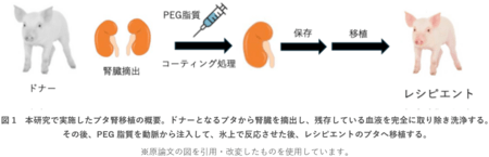 ・ PEG脂質による血管内皮のコーティング技術をブタ腎臓に適用し、ブタの腎移植実験において免疫反応を抑制