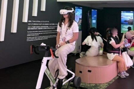 さらに、来場者が VR ゴーグルを着用して、スポーツバイクを漕ぎながらアルプスやアドリア海などを豊かな自然を巡る、バーチャルサイクリング体験にも注目です。このサイクリング体験を通じて、地理的多様性とスポーツ文化の深い関係性を直感的に楽しんでください。
