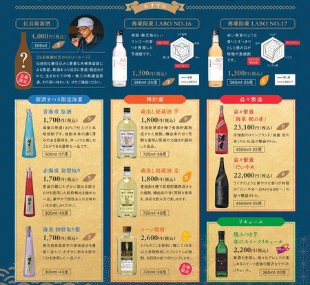 本格麦焼酎「うかぜ」、「薩州 赤兎馬」シリーズ、傳藏院蔵LABOシリーズ など