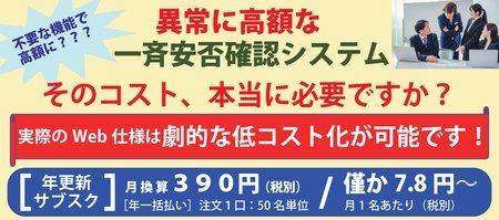 異常に高額な「一斉安否確認システム」! そのコスト、本当に必要ですか? 不必要な機能で高額になっていませんか?