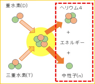 従来の熱核融合は重水素と三重水素(トリチウム)を燃料とした核融合反応が主流です。大量の中性子が発生するため、材料の放射化や中性子・ガンマ線への対策が必要です。