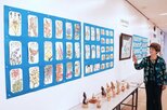 会場には、髙山さんが奈良県でスケッチした會津八一の歌碑や受講生が描いた白根地区のたこ揚げなどの絵が並ぶ。大リーガーの活躍を本のようにまとめたユニークな作品もある。