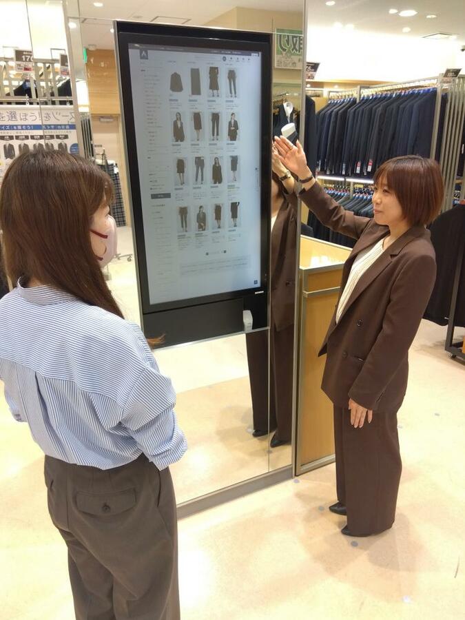 消費行動の急速なデジタル化を背景に、商品の購買方法もオンラインとオフラインを活用し、自分に最適化された体験を求めるようになっています。こうした市場環境を受け、中期経営計画の基本戦略を推し進めるための「柱となる3つの方針」を掲げました。その中の「OMO推進」「DX推進」において、ネットとリアルを融合させた接客体制の構築をさらに強化するため、この度『デジラボ』を「洋服の青山」全店へ導入しました。今後も顧客一人ひとりに寄り添ったサービス提供を目指してまいります。