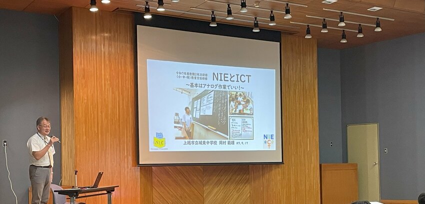 9月17日(水)県立教育センターで実施された、「令和7年度教職2年次研修」において、「授業におけるICTの活用」の講義を新潟県NIEアドバイザーでいらっしゃる上越市立城東中学校の岡村範雄教諭が「NIEとICT」と題して担当してくださいました。