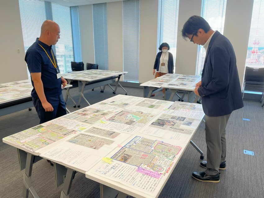 9月27日(土)「第14回親子でチャレンジ!!小学生夏休み新聞スクラップコンテスト2025」(新潟日報社、NIC新潟日報販売店グループ主催・県NIE推進協議会後援)の「予備審査」が行われました。今年は県内の小学校から200点以上の作品の応募がありました。審査は、新潟県NIEアドバイザーの古井丸裕三校長(新潟市立曽根小学校)、同じく新潟県NIEアドバイザーの牛膓昌克教頭(新潟市立大鷲小学校)、NIE推進協議会宇ノ井事務局長、そして新潟日報社読者局石原亜矢子次長、の4名が務めました。