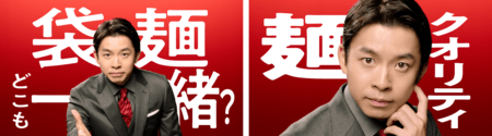 おいしそうな麺をバックに、クオリティのすごさを熱弁しながら 「麺の明星」 を高らかにアピール !