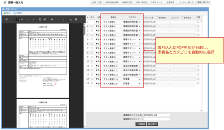~在宅医療の多様な文書管理をスマートに。PDFを自動で識別・分割し、指定したカテゴリに分類・保存~