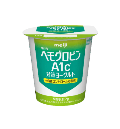 左から「明治ヘモグロビンA1c対策ヨーグルト」(112g)