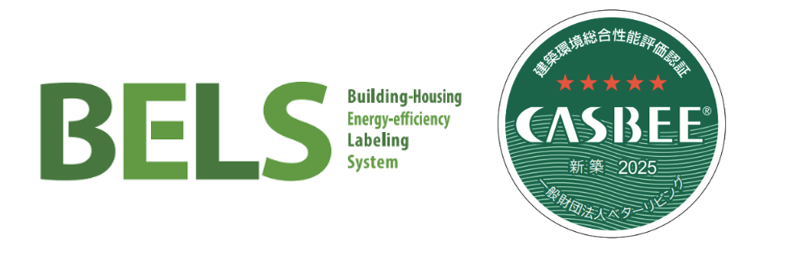※2:BELS(Building-Housing Energy-efficiency Labeling System)は、日本における建物の省エネルギー性能を表示する第三者認証制度です。建物の省エネルギー性能を一次エネルギー消費量や外皮性能などの指標に基づいて数値化し、星が多いほど省エネルギー性能が高いことを示します。