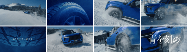 今回は冬篇として、当社製SUV専用スタッドレスタイヤ「OBSERVE GSi-6」を装着した「LEXUS GX 550」が、当社の主力市場であるアメリカの雄大な雪山を力強く駆け抜ける姿を描いています。6月に制作した企業CFに続き、楽曲にはアメリカのロックバンド「ドゥービー・ブラザーズ」が1973年に発表した世界的ヒットソング「Long Train Runnin’」を採用。コーポレートカラーの「青」を基調に、雪原を舞台にしたダイナミックな走行シーンを通じて、ブランドステートメント「まだ、走ったことのない道へ。」が象徴する当社グループのフロンティア精神を、力強く印象づける内容に仕上げました。