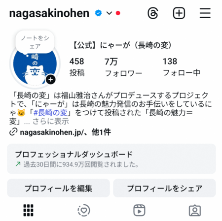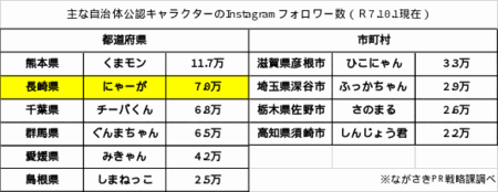 長崎県の魅力やチャレンジを発信する「長崎の変」プロジェクトの公式キャラクター「にゃーが」のInstagramのフォロワーが7万人を突破しました。