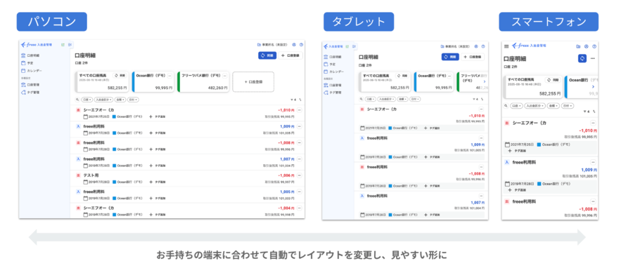 主にタブレット・スマートフォン利用時の画面の最適化とfreeeの各種プロダクト画面との画面構成統一に対応しました。