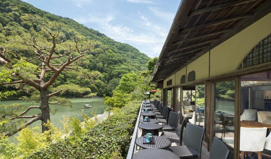 築100年を超える歴史的建造物 「八賞軒」の伝統を現代に継承する「茶寮 八翠」。歴史上の多くの貴人が愛した保津川と嵐山の景色を四季折々にテラスから望めます。絶景を愛でる特等席とお茶菓子や「むしやしない」※で、旅のひとときをおもてなしいたします。