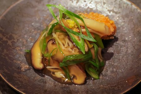 柔らかい湯葉の上に添えたネギと生姜の和え物が、かつお出汁の餡に溶け込むことで、より深みのある味わいに仕上がっています。