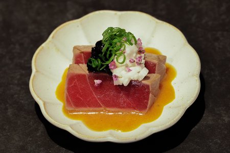 鮪の奥深い味わいを引き出すため、香り付けとして燻製醤油を用い、サッと漬け込んでいます。