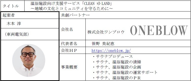 ①「My turn」の2次選考通過者が、「温浴施設向け支援サービス『CLEAN ゆLAND』〜地域の文化とコミュニティを守るために〜」をテーマに、共創による事業化を目指して実証実験を開始。