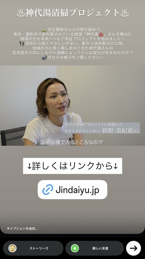 協業先の代表でもある笹野美紀恵氏のSNSアカウント(Instagram、X)から、「清掃」によって銭湯が生まれ変わる「変化の瞬間」をリアルタイムに発信します。動画や写真を活用し、清掃がもたらす新しい体験価値を、直感的かつ臨場感をもって伝えていきます。