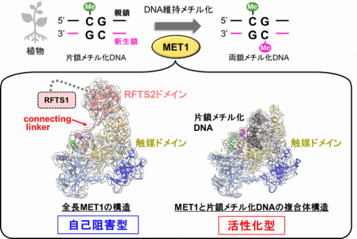 クライオ電顕で植物のDNA維持メチル化酵素MET1の活性化状態と自己阻害状態の構造の可視化に成功。