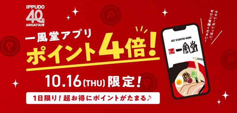 ■ 10/16(木) 一風堂公式アプリ ポイント4倍デー