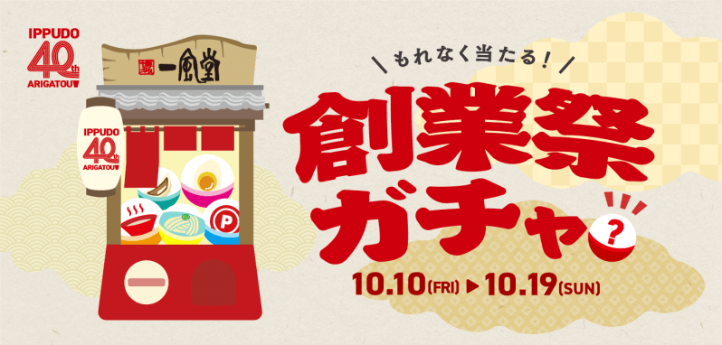 ■ 10/10(金)~ 10/19(日) 一風堂公式アプリ 創業祭ガチャ