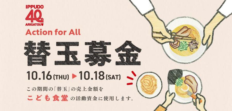 今回の「替玉募金」では、昨年と同様、期間中に店舗でお客様にご注文いただいた「替玉」の売上金額を、一風堂の今後のこども食堂の活動資金として使わせていただきます。昨年も多くのお客様の温かいご支援をいただき、2025年で10回、2021年から2025年まででのべ69回のこども食堂実施に繋げられました。ささやかな形ではありますが今後も活動を続けることで、こども食堂への参加と認知・支援の輪を広げ、持続可能な社会の実現に貢献します。
